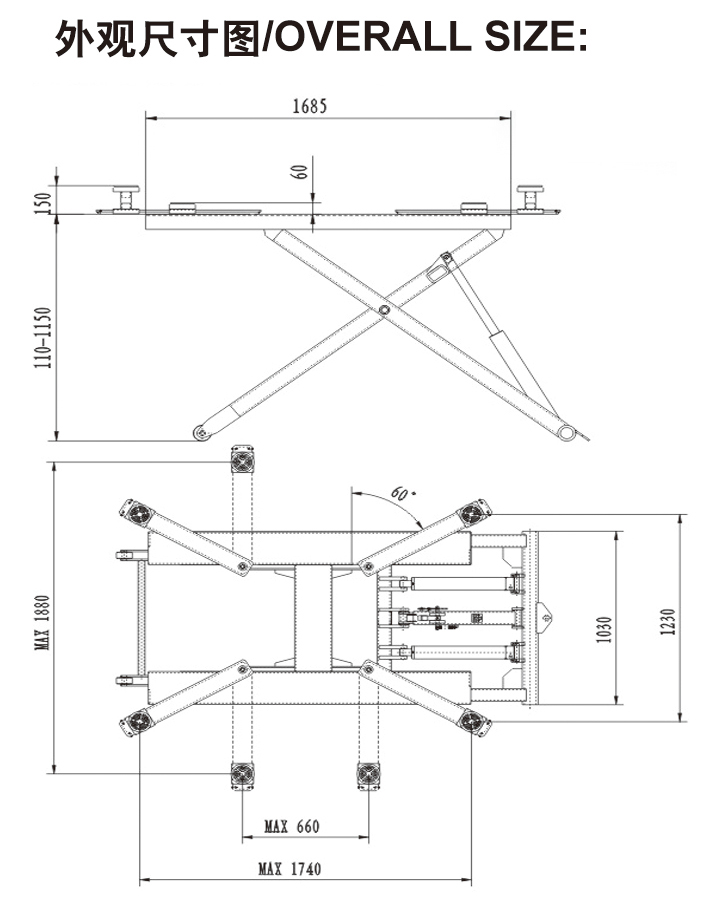最小举升高度/Min.height 110mm